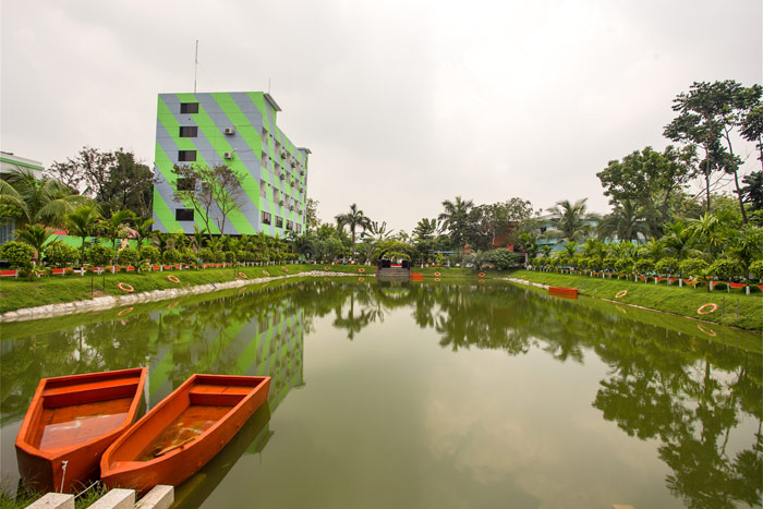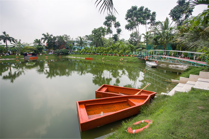 A mini zoo on site with ample number of deers and a Bird’s house with Peacocks and birds of many species will definitely satisfy your mind and soul. Especially the children would love the deer's and birds. Moreover, a children play area with slides and swings attract children to spend their time in fun. A large pond in the landscape will welcome you for fishing, boating or any other aquatic fun.